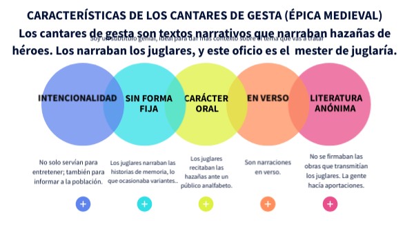 CARACTERÍSTICAS DE LOS CANTARES DE GESTA (ÉPICA MEDIEVAL)Los cantares de gesta son textos narrativos que narraban hazañas de héroes. Los narraban los juglares, y este oficio es el mester de juglaría.