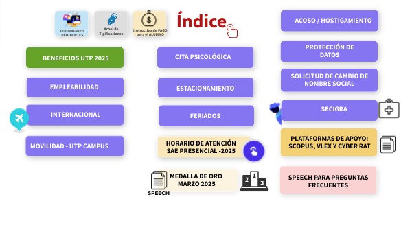 Te comento que los beneficios de UTP para el 2025 son todos los que figuran en el UTP+Portal. Te pido que, por favor, los revises a través de tu UTP+Portal > Inicio > Beneficios, y así puedas aprovecharlos.