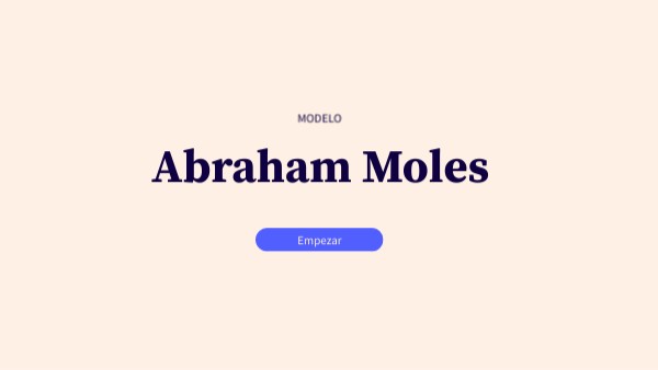 Abraham André Moles nació en París, en 1920, vivio su infacia como cualquier otro niño. Tras superar la educación primaria y secundaria, se matriculó en la Universidad de Grenoble para realizar los estudios necesarios para convertirse en ingeniero eléctrico y acústico. Su primer título profesional fue como ingeniero eléctrico y de sonido. En 1952 presentó su primera tesis de doctorado. En el año 1966, Abraham Moles establece otro de los grandes hitos de su carrera. Y es que en ese año, fundó el Instituto de Psicología Social de las Comunicaciones. Lamentablemente murio el 22 de mayo de 1992. Aunque Para Abraham Moles, la comunicación era un proceso de interacción dinámica entre individuos, en el que una serie de elementos básicos se transmitían y se combinaban sucesivamente, creando un mensaje cada vez más complejo, siendo esta una de sus mayores aportaciones.