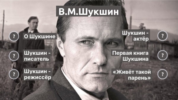 Василий Макарович Шукшин (25 июля 1929 — 2 октября 1974) — советский актёр, кинорежиссёр, сценарист, писатель. Заслуженный деятель искусств РСФСР (1969). Родился в крестьянской семье. В 1945–1947 годах учился в Бийском автотехникуме. В 1947–1949 годах работал слесарем-такелажником и разнорабочим на заводах Калуги и Владимира. В 1949 году Шукшин был призван служить в Военно-Морской флот. Литературная деятельность В. М. Шукшина началась в армии, именно там он впервые попытался писать рассказы, которые читал своим сослуживцам.