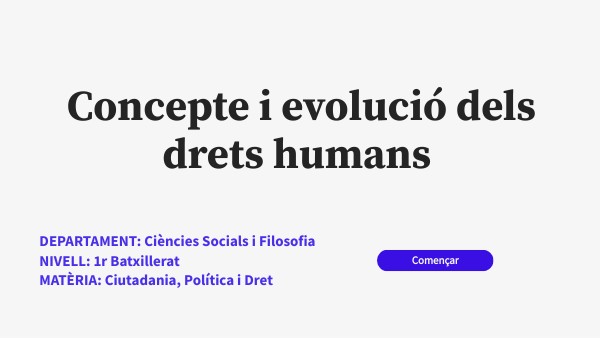 DEPARTAMENT: Ciències Socials i Filosofia NIVELL: 1r Batxillerat MATÈRIA: Ciutadania, Política i Dret