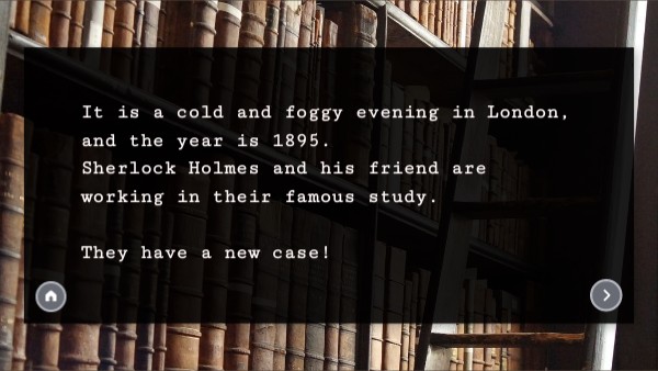 It is a cold and foggy evening in London, and the year is 1895. Sherlock Holmes and his friend are working in their famous study. They have a new case!