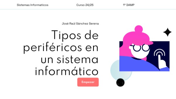 Periféricos: https://concepto.de/dispositivos-de-salida/ https://aswa.es/que-son-los-4-tipos-de-perifericos/?expand_article=1 https://www.profesionalreview.com/perifericos/ Tipos: https://es.wikipedia.org/wiki/Periférico_de_entrada/salida https://www.diferenciador.com/dispositivos-de-entrada-y-salida/ Entrada: https://www.profesionalreview.com/2022/05/28/teclado-funciones-para-que-sirve-cada-tecla/ https://concepto.de/mouse/ https://hiraoka.com.pe/blog/post/camara-web-como-elegir-la-webcam-ideal#:~:text=La%20cámara%20web%20es%20un,transmisiones%20en%20vivo%20y%20más.