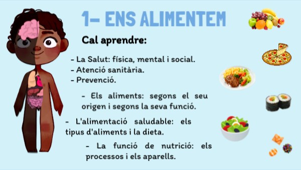 - L'alimentació saludable: els tipus d'aliments i la dieta.
