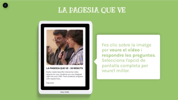 Fes clic sobre la imatge per veure el vídeo i respondre les preguntes. Selecciona l'opció de pantalla completa per veure'l millor.