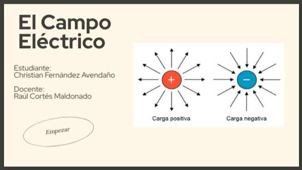 Bismarks, J. L. (2023, septiembre 22). Líneas de Campo Eléctrico. Electrónica Online. https://electronicaonline.net/electricidad/lineas-de-campo-electrico/ Campo eléctrico creado por una distribución continua de carga. (s/f). Youphysics.education. Recuperado el 29 de septiembre de 2024, de https://www.youphysics.education/es/campo-electrico-dcontinua/ Campo y potencial eléctrico de una distribución continua de carga. (s/f). Ehu.es. Recuperado el 30 de septiembre de 2024, de http://www.sc.ehu.es/sbweb/fisica3/electrico/campo_1/campo_1.html Cruzito. (2020, noviembre 4). Campo eléctrico: distribuciones de carga discretas y continuas. Estudyando. https://estudyando.com/campo-electrico-distribuciones-de-carga-discretas-y-continuas/ Ingenierizando. (2024a, enero 11). Líneas de campo eléctrico. Ingenierizando. https://www.ingenierizando.com/electronica/lineas-de-campo-electrico/ Ingenierizando. (2024, enero 25). Campo eléctrico uniforme. Ingenierizando. https://www.ingenierizando.com/electronica/campo-electrico-uniforme/ Por, M. (2024a, marzo 21). Campo Eléctrico de un Anillo de Carga. Electricity - Magnetism. https://www.electricity-magnetism.org/es/campo-electrico-de-un-anillo-de-carga/ Por, M. (2024b, marzo 21). Campo Eléctrico de un Disco Cargado. Electricity - Magnetism. https://www.electricity-magnetism.org/es/campo-electrico-de-un-disco-cargado/ Fernández, J. L. (s/f). Líneas de Campo Eléctrico. Fisicalab.com. Recuperado el 30 de septiembre de 2024, de https://www.fisicalab.com/apartado/lineas-de-fuerza Movimiento de una partícula cargada en un campo eléctrico y en un campo magnético. (s/f). Ehu.es. Recuperado el 30 de septiembre de 2024, de http://www.sc.ehu.es/sbweb/fisica3/magnetico/movimiento/movimiento.html