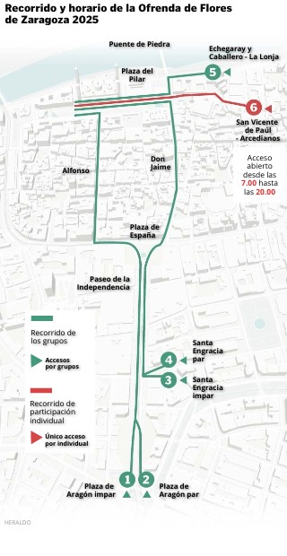 Recorrido y horario de la Ofrenda de Flores de Zaragoza 2025