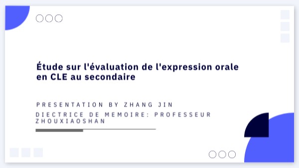 Chapitre I: l'évaluation de compétence communcative en langue étrangères Chapitre II: L'application du CECRL dans l'évaluation scolaire au secondaire Chapitre III: L'état des lieux pour l'expression orale en chinois au secondaire Chapitre IV: l'éxpérimentation de l'évaluation orale dans l'établissement Notre-Dame "Les Oiseaux" à Verneuil-Sur-Seine