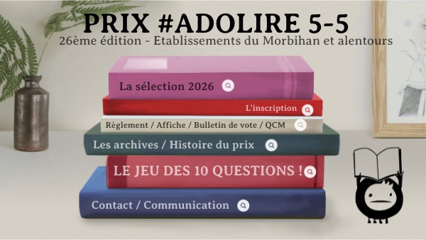 Du 24 février au 12 mai, faites participer vos élèves au JEU DES 10 QUESTIONS. Retrouvez ICI chaque semaine, une question sur un livre de la sélection. Les élèves ont une semaine pour y répondre par mail. Des livres seront envoyés aux gagnants.