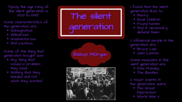 Tipicly the age rang of the silent generation is 1928 to 1945.