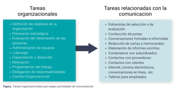 Figura: Tareas organizacionales que exigen actividades de comunicación.