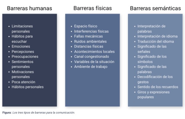 Figura: Los tres tipos de barreras para la comunicación.