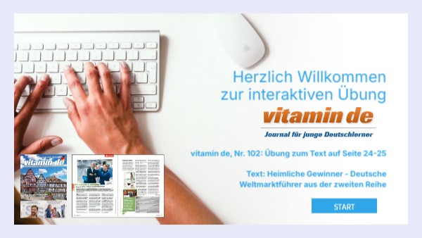 vitamin de, Nr. 102: Übung zum Text auf Seite 24-25 Text: Heimliche Gewinner - Deutsche Weltmarktführer aus der zweiten Reihe