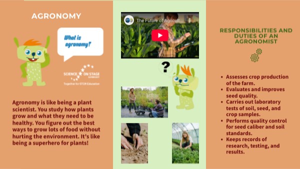 Agronomy is like being a plant scientist. You study how plants grow and what they need to be healthy. You figure out the best ways to grow lots of food without hurting the environment. It's like being a superhero for plants!
