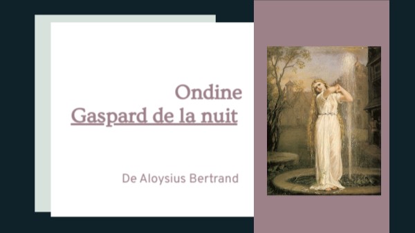 - Ce poème en prose romantique mêle rêve (narrateur rêve d'une ondine tentant de le séduire), séduction et monde aquatique fantastique. - La structure et le style reflète alors l'influence du romantisme. Celui-ci est construit sur une progression qui conduit au réveil et à la reprise de connaissances.- Ondine fait donc apparaitre la frontière entre le monde intérrieur (là où est le poète) et le monde extérieur (derrière la vitre).