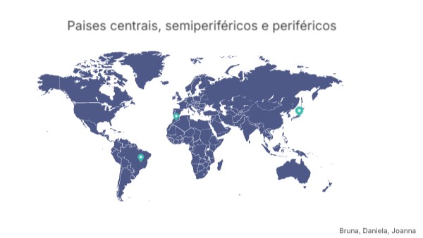 - O Brasil portanto ocupa essa posição hibrida. Ele é um "centro" para os países mais pobres, excportando bens mais elaborados e exercendo influêcia política e econômica, mas também é uma "períferia" para as nações centrais, fornecendo recursos naturais e im portando tecnologia e capital.