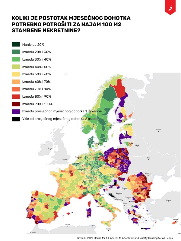 KOLIKI JE POSTOTAK MJESEČNOG DOHOTKA POTREBNO POTROŠITI ZA NAJAM 100 M2 STAMBENE NEKRETNINE?
