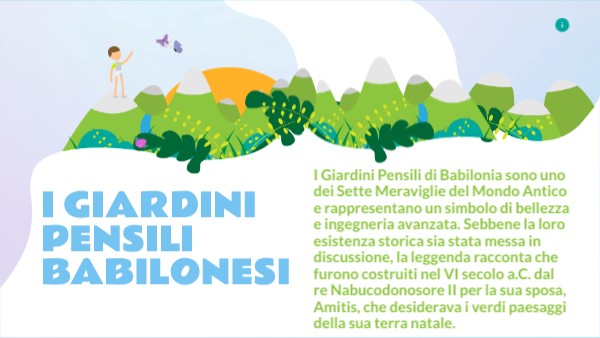 I Giardini Pensili di Babilonia sono uno dei Sette Meraviglie del Mondo Antico e rappresentano un simbolo di bellezza e ingegneria avanzata. Sebbene la loro esistenza storica sia stata messa in discussione, la leggenda racconta che furono costruiti nel VI secolo a.C. dal re Nabucodonosore II per la sua sposa, Amitis, che desiderava i verdi paesaggi della sua terra natale.