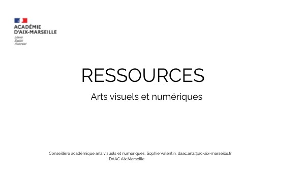 Conseillère académique arts visuels et numériques, Sophie Valentin, daac.arts@ac-aix-marseille.fr DAAC Aix Marseille
