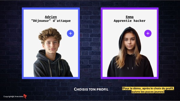 (Pour la démo, après le choix du profil, suivre les puces jaunes)
