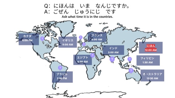 Q:にほんは いま なんじですか。 A:ごぜん じゅうにじ です
