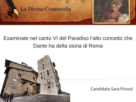 Esaminate nel canto VI del Paradiso l’alto concetto che Dante ha della storia di Roma