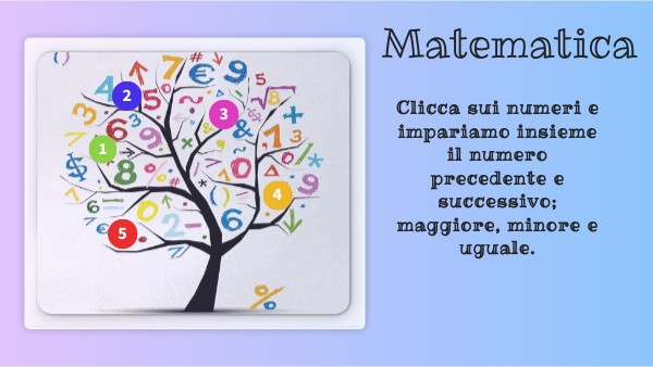 Clicca sui numeri e impariamo insieme il numero precedente e successivo; maggiore, minore e uguale.