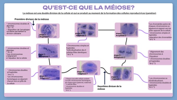 La méiose est une double division de la cellule et qui se produit au moment de la formation des cellules reproductrices (gamètes).