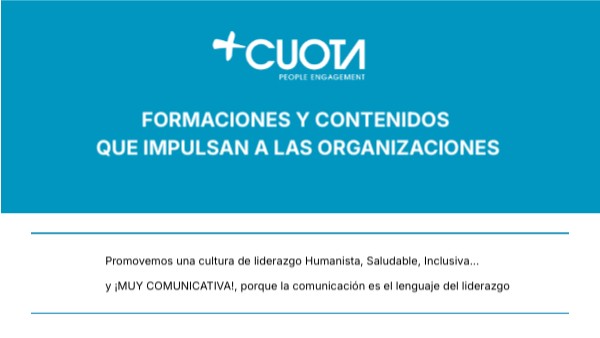 Más Cuota People Engagement es compartir la visión de que solo con vínculos verdaderos y compromisos recíprocos las organizaciones pueden ser auténticos agentes de cambio. Promovemos una cultura de liderazgo humanista, saludable e inclusiva. Somos creativos, comunicativos, apasionados e inconformistas.
