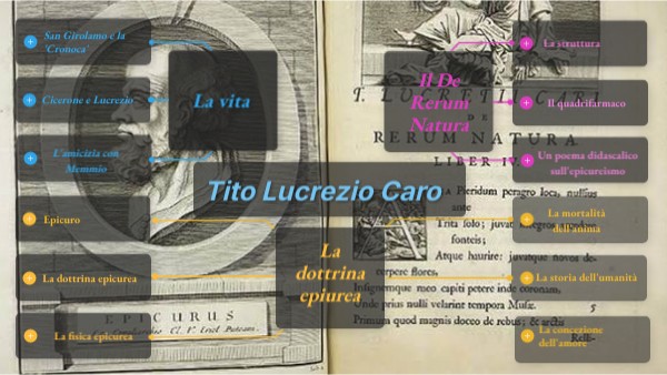 Il De rerum natura è un poema didascalico di oltre 700 esametri e si compone di 6 libri divisi in tre diadi. Le tre diadi sono dedicate rispettivamente: