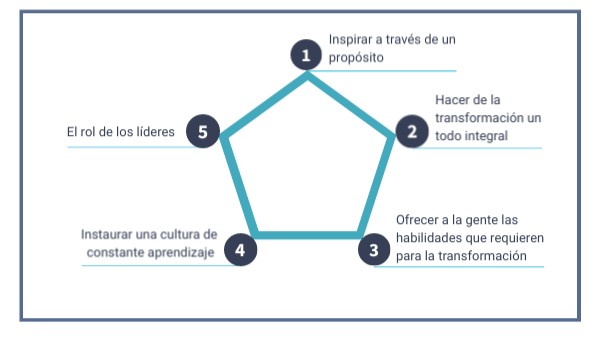- En una transformación, los líderes necesitan tener una visión, un mapa claro de acción con objetivos específicos, y mantener a la gente involucrada para obtener los resultados que se buscan.