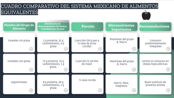 Cuadro comparativo del Sistema Mexicano de Alimentos Equivalentes