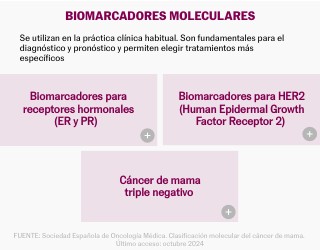 FUENTE: Sociedad Española de Oncología Médica. Clasificación molecular del cáncer de mama. Último acceso: octubre 2024