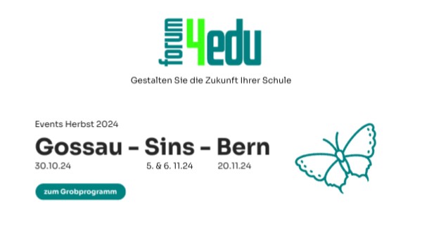 Um 16.15 Uhr laden wir alle Anwesenden zur Teilnahme an der Podiumsdiskussion 'forum4edu - Gestalten Sie die Zukunft Ihrer Schule' auf dem Dorfplatz ein. Gerne bieten wir Ihnen die Möglickeit über Themen, welche euch beschäftigen zusammen mit den Experten zu diskutieren.