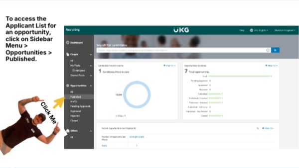 To access the Applicant List for an opportunity, click on Sidebar Menu > Opportunities > Published.