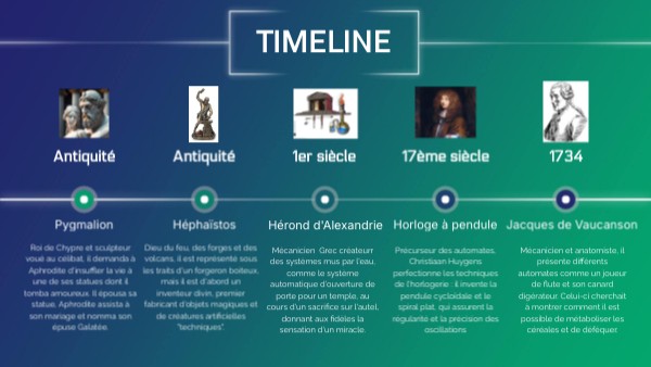 Précurseur des automates, Christiaan Huygens perfectionne les techniques de l'horlogerie : il invente la pendule cycloïdale et le spiral plat, qui assurent la régularité et la précision des oscillations