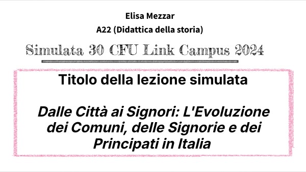 Titolo della lezione simulata Dalle Città ai Signori: L'Evoluzione dei Comuni, delle Signorie e dei Principati in Italia