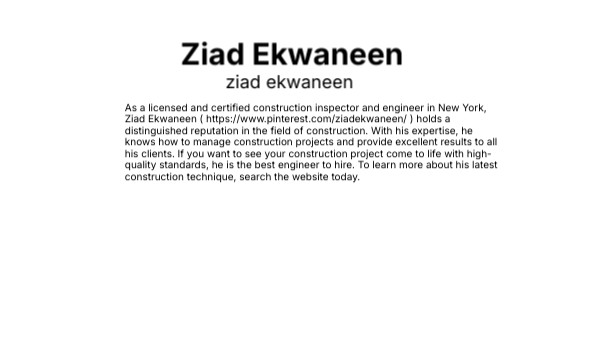 As a licensed and certified construction inspector and engineer in New York, Ziad Ekwaneen ( https://www.pinterest.com/ziadekwaneen/ ) holds a distinguished reputation in the field of construction. With his expertise, he knows how to manage construction projects and provide excellent results to all his clients. If you want to see your construction project come to life with high-quality standards, he is the best engineer to hire. To learn more about his latest construction technique, search the website today.