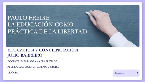 Este texto resalta la profunda conexión entre la educación y la libertad según Paulo Freire, quien sostiene que la verdadera educación es una "praxis", una reflexión y acción que busca transformar el mundo. Para Freire, educar es concienciar, lo que implica no solo alfabetizar, sino también despertar una conciencia crítica que libere al individuo y lo integre plenamente en su realidad social, económica y política.Freire rechaza los métodos tradicionales de alfabetización y educación, que, según él, domesticaban al educando, en lugar de empoderarlo. La llamada "educación bancaria" convierte a los estudiantes en recipientes pasivos de conocimiento, reforzando su condición de oprimidos. En contraste, Freire propone una educación dialogante, en la que tanto educador como educando se enseñan mutuamente, mediando por el mundo y sus realidades.