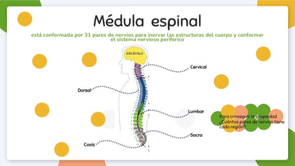 está conformada por 31 pares de nervios para inervar las estructuras del cuerpo y conformar el sistema nervioso periferico