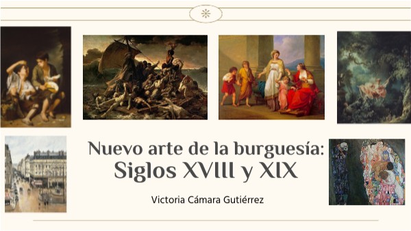 Presentación sobre el nuevo arte de la burguesía que surgió entre los siglos XVIII y XIX. Para ver más de cerca las obras, hay que pulsar en las cruces que aparecen en una de sus esquinas.