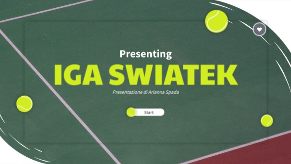 Iga Natalia Świątek è una tennista polacca. Considerata una delle tenniste più forti della sua generazione, in carriera ha vinto ventidue titoli WTA, tra cui cinque prove del Grande Slamoltre alle WTA Finals nel 2023 e alla medaglia di bronzo ai Giochi Olimpici di Parigi 2024. Nell'aprile del 2022 ha raggiunto la 1ª posizione della classifica mondiale. È stata la prima tennista polacca e la prima al mondo nata nel XXI secolo ad essersi aggiudicata un Major in singolare e ad avere raggiunto la vetta del ranking mondiale femminile