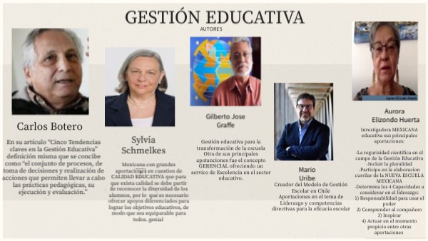 Investigadora MEXICANA educativa sus principalesaportaciones: -La regurisidad científica en el campo de la Gestión Educativa -Incluir la pluralidad -Participo en la elaboracion currilar de la NUEVA ESCUELA MEXICANA -Determina los 4 Capacidades a considerar en el liderazgo: 1) Responsabilidad para usar el poder 2) Comprender al compañero 3) Inspirar 4) Actuar en el momento propicio entre otras aportaciones