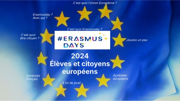 Les pays partenaires sont la Grèce, l’Italie et le Portugal. Les objectifs de ce projet sont: - pour les élèves : améliorer la réussite éducative, développer la mobilité des apprenants et former des citoyens européens - pour les personnels: améliorer les connaissances sur le système éducatif et les modalités d’inclusion et enrichir les pratiques pédagogiques. Cette journée « Erasmus Days » sera l’occasion de faire connaître ce projet et de sensibiliser les élèves aux différentes thématiques du projet. 3 ateliers sont donc organisés !! Bienvenue à l'atelier "Élèves et citoyens européens"