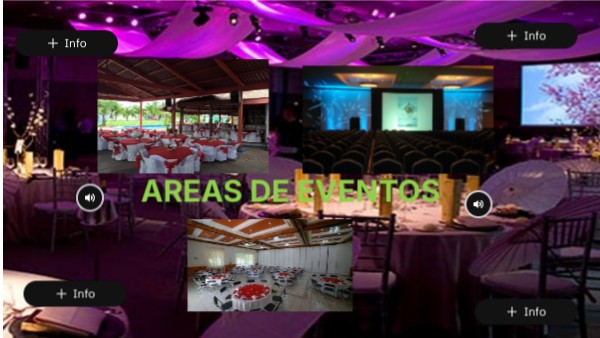 Las áreas de eventos en un hotel comprenden espacios como salones de conferencias, centros de convenciones y business centers (centros de negocios). Estas áreas están diseñadas para la realización de actividades como reuniones corporativas, congresos, bodas, seminarios, y otros eventos sociales o de negocios.
