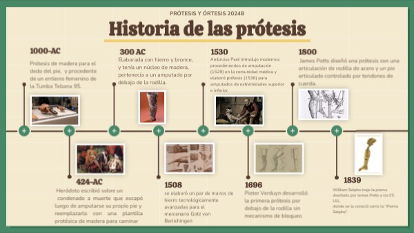 -Norton, K. (2007). Un breve recorrido por la historia de la protésica. Revista Inmotion, 15.-Forssmann, A. (2017, 21 junio). Sofisticación en el Antiguo Egipto: una prótesis de hace 3.000 años. historia.nationalgeographic.com.es. https://historia.nationalgeographic.com.es/a/sofisticacion-antiguo-egipto-protesis-hace-3000-anos_11639 -Álvarez, J. (2023, 16 febrero). Götz von Berlichingen, el hombre del brazo de hierro glosado por Goethe y autor de una famosa frase usada por. La Brújula Verde. https://www.labrujulaverde.com/2019/02/gotz-von-berlichingen-el-hombre-del-brazo-de-hierro-glosado-por-goethe-y-autor-de-una-famosa-frase-usada-por-mozart -Redacción. (2018, 25 marzo). Ambroise Paré, el barbero convertido en médico de los reyes de Francia que cambió la cirugía para siempre. BBC News Mundo. https://www.bbc.com/mundo/noticias-43478384 -Amputee Coalition. (2018, 26 octubre). Un breve recorrido por la historia de la protésica - Amputee Coalition. https://www.amputee-coalition.org/resources/spanish-history-prosthetics/