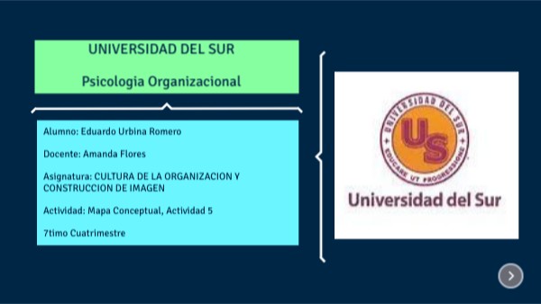 Alumno: Eduardo Urbina Romero Docente: Amanda Flores Asignatura: CULTURA DE LA ORGANIZACION Y CONSTRUCCION DE IMAGEN Actividad: Mapa Conceptual, Actividad 5 7timo Cuatrimestre