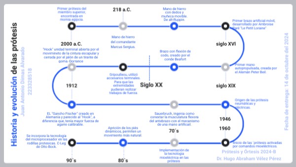 [1] Reseña histórica de las prótesis. (s. f.). revista.unam.mx, 6, 1. https://www.revista.unam.mx/vol.6/num1/art01/art01-1a.htm [2] García, S. D., & Espinoza, V. M. J. (2014). Avances en prótesis: una mirada al presente y al futuro. Revista Médica Clínica las Condes, 25(2), 281-285. https://doi.org/10.1016/s0716-8640(14)70039-2 [3] Chopra, S., & Emran, T. B. (2024). Advances in AI-based prosthetics development: editorial. International journal of surgery (London, England), 110(8), 4538–4542. https://doi.org/10.1097/JS9.0000000000001573 [4] Baverstock, T. (2019, 16 marzo). LimbU. Baverstock Designs. http://troybaverstock.com/design/limbu/ [5] Össur. Life without limitations. (2019, 4 noviembre). Össur. Recuperado 13 de octubre de 2024, de https://www.ossur.com/global/about-ossur/newsroom/ossur-and-alfred-mann-foundation-sign-new-agreement [6] Finney, A., & Finney, A. (2022, 28 febrero). Esper Hand is a prosthetic arm with «human-like dexterity». Dezeen. https://www.dezeen.com/2022/02/24/esper-bionics-human-prosthetic-arm-mind-control/ [7] Stevenson, D. (2022, 28 noviembre). Utah Bionic Leg in Science Robotics - Mechanical Engineering | University of Utah. Mechanical Engineering | University Of Utah. https://www.mech.utah.edu/utah-bionic-leg-in-science-robotics/