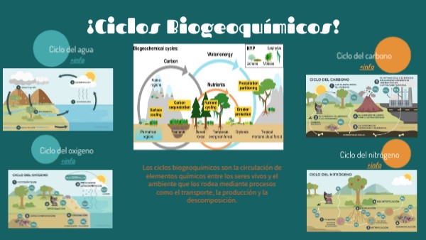 Los ciclos biogeoquímicos son la circulación de elementos químicos entre los seres vivos y el ambiente que los rodea mediante procesos como el transporte, la producción y la descomposición.
