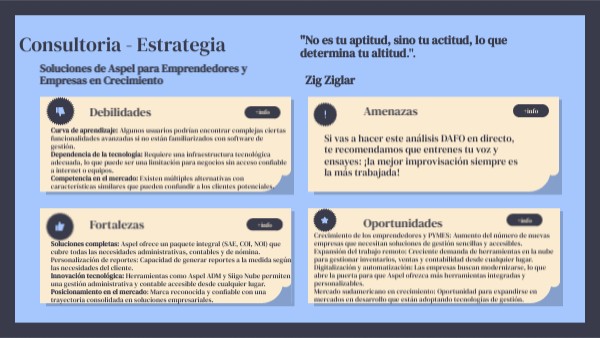 Si vas a hacer este análisis DAFO en directo, te recomendamos que entrenes tu voz y ensayes: ¡la mejor improvisación siempre es la más trabajada!